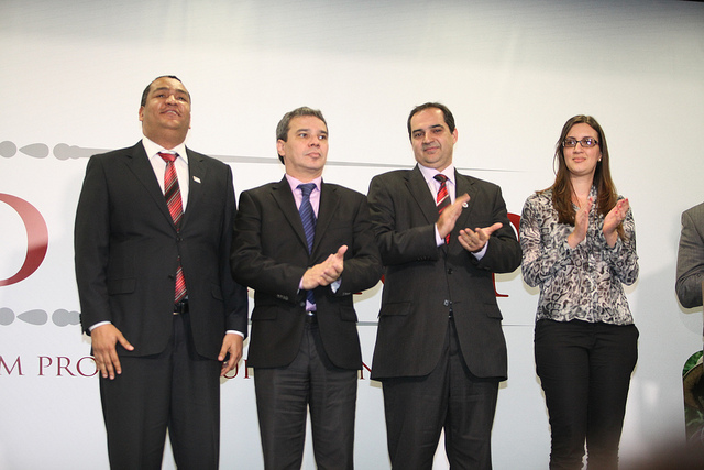 O programa ‘O Ministério Público e os Objetivos do Milênio: Saúde e Educação de Qualidade para Todos’ recebeu na tarde de hoje, dia 06, em Brasília, no Conselho Nacional do Ministério Público (CNMP), o prêmio de melhor projeto da categoria Defesa dos Direitos Fundamentais do ‘Prêmio CNMP’. Em solenidade com mais de 200 pessoas, o idealizador do programa, promotor de Justiça Clodoaldo Anunciação, e o procurador-geral de Justiça da Bahia, Wellington César Lima e Silva, receberam a premiação juntamente com o coordenador da Gestão Estratégica do Ministério Público da Bahia, promotor de Justiça Marcelo Guedes, e a servidora Rita de Cássia Andrade.